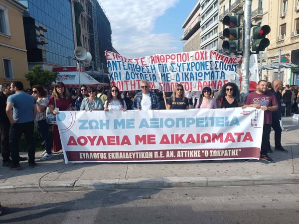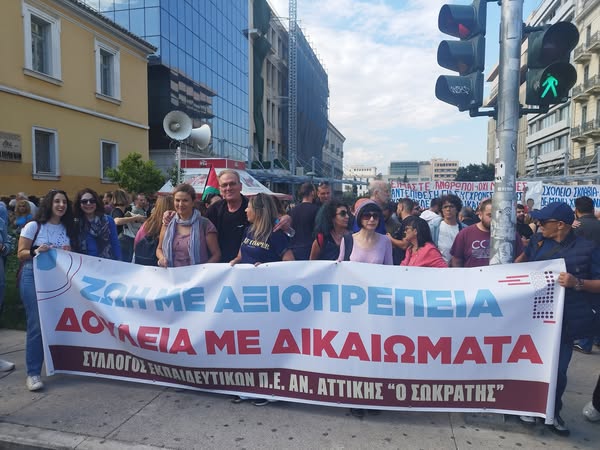 Από τη χθεσινή (1/10/2025) μαζική απεργιακή κινητοποίηση στα προπύλαια στην οποία συμμετείχε και το μπλοκ του συλλόγου εκπαιδευτικών «ο Σωκράτης»!
