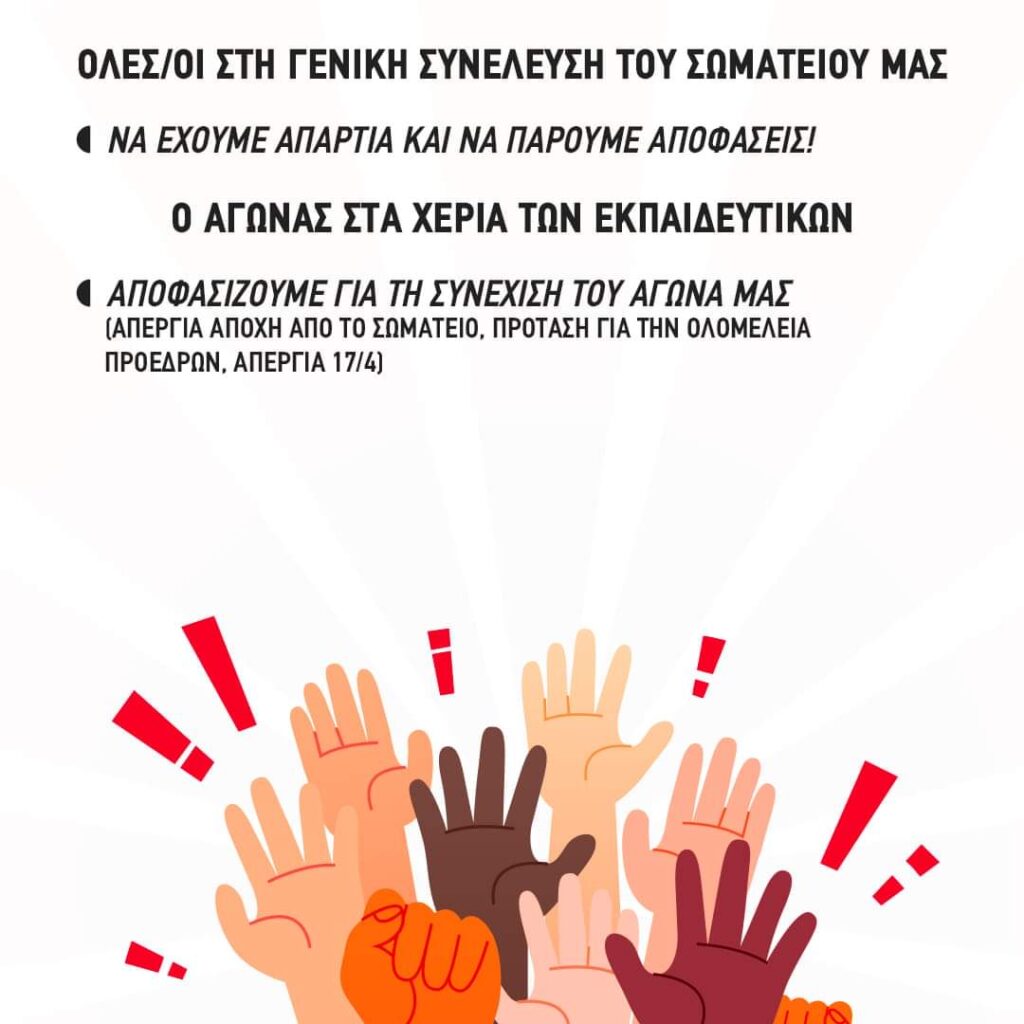 ΑΦΙΣΑ ΓΙΑ ΤΗΝ ΓΕΝΙΚΗ ΣΥΕΛΕΥΣΗ ΤΟΥ ΣΥΛΛΟΓΟΥ ΣΤΙΣ 27/03/2024 26 Μαρτίου 202424 Μαρτίου 2024 Από Ξανθή Σωτηροπούλου Συνέλευση Συλλόγου Τετάρτη 27/03/2024 στις 7:00 μ.μ. στο 3ο Δ.Σ. Αχαρνών. .