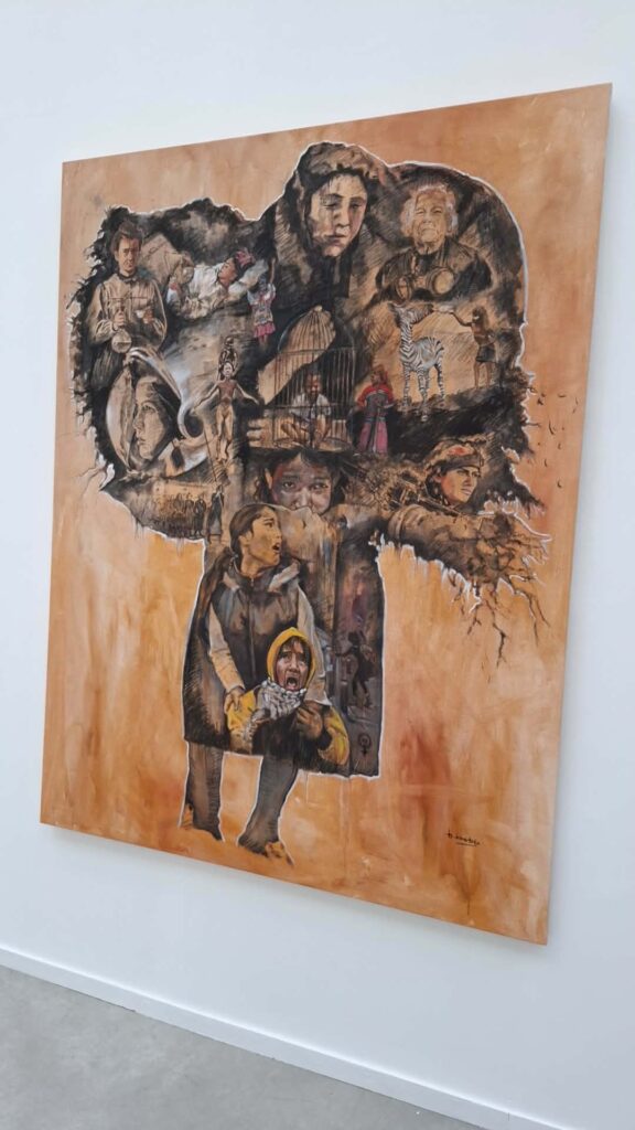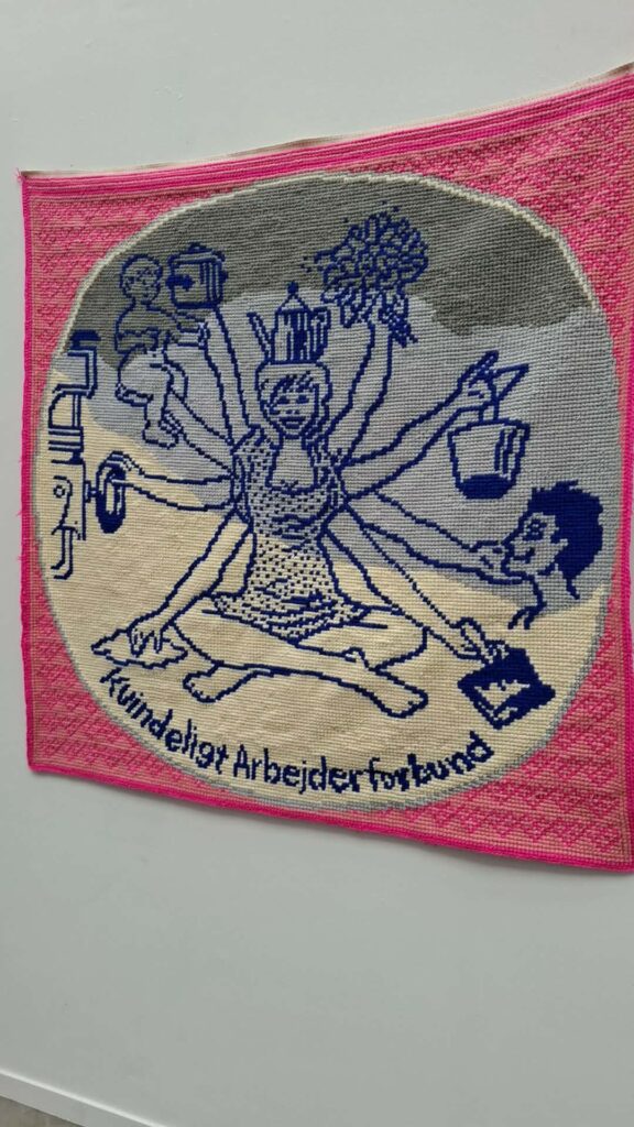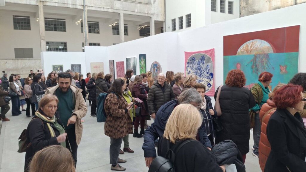 Η έκθεση, με τίτλο «Πίσω από τη βιτρίνα: Γυναίκες της δουλειάς και της ζωής», περιλαμβάνει έργα 450 καλλιτεχνών, εμπνευσμένα από τη συλλογική δράση των εργαζόμενων γυναικών για την ισοτιμία και τη χειραφέτησή τους.