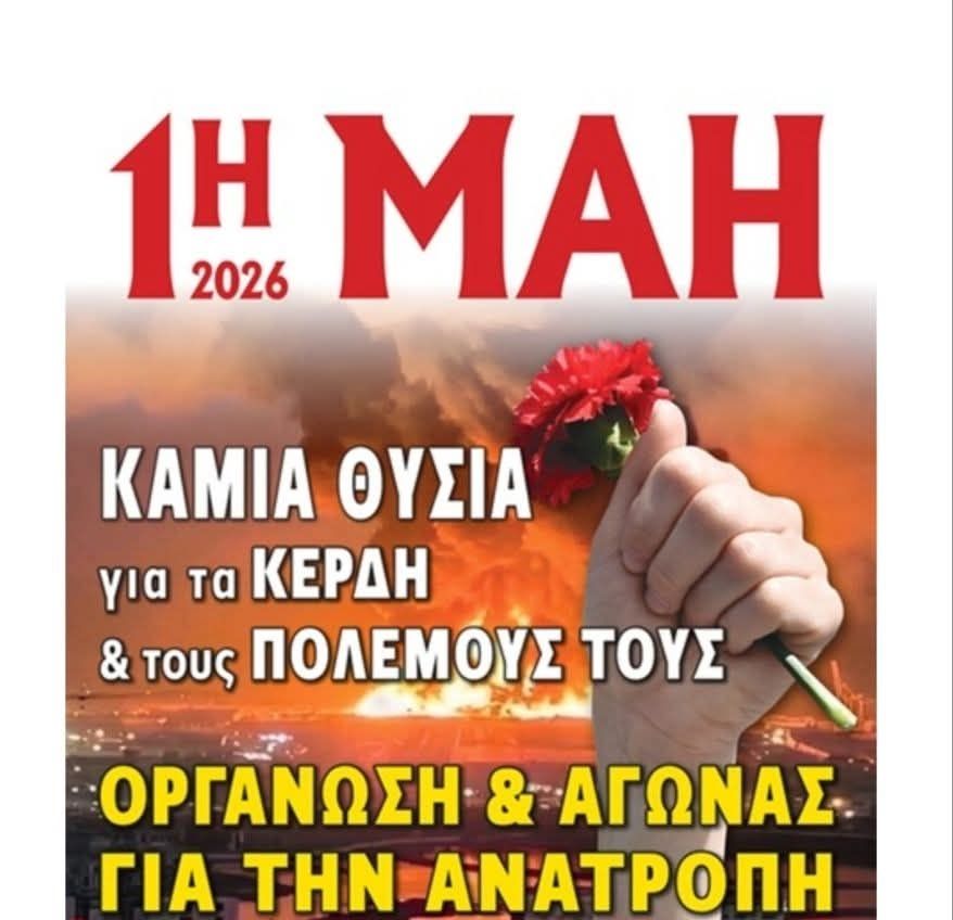Η φετινή Πρωτομαγιά μας βρίσκει αντιμέτωπους, με την κλιμάκωση του ιμπεριαλιστικού πολέμου, τον πλανήτη να φλέγεται από ιμπεριαλιστικές επεμβάσεις για το μέγιστο κέρδος των επιχειρηματικών ομίλων. Για τα κέρδη των εφοπλιστών και των βιομηχάνων, για το μοίρασμα των αγορών, των εδαφών, των δρόμων ενέργειας, των πλουτοπαραγωγικών πηγών, δυναμώνει η εμπλοκή και ενεργή συμμετοχή στους ιμπεριαλιστικούς σχεδιασμούς ΗΠΑ – ΝΑΤΟ ΕΕ, με τεράστιες ευθύνες της κυβέρνησης της ΝΔ και των κομμάτων του κεφαλαίου. Οι όποιες συμφωνίες «κατάπαυσης του πυρός» με το πιστόλι στον κρόταφο, αποδεικνύεται ότι δεν εξασφαλίζουν το τέλος του πολέμου αλλά αντιθέτως οι ανταγωνισμοί συσσωρεύουν νέα καύσιμη ύλη για νέο κύκλο πολέμων με μεγάλο κίνδυνο γενικότερης ανάφλεξης.