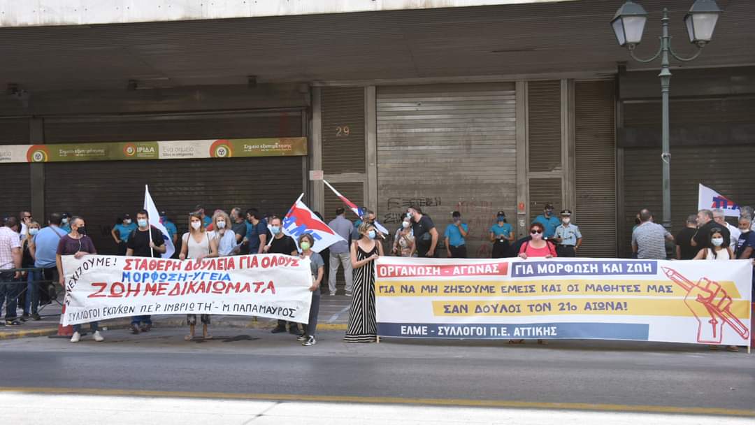Εικόνες από τη χθεσινή κινητοποίηση στο Υπ. Εργασίας που πραγματοποίησαν Εκπαιδευτικά Σωματεία, Σύλλογοι και ΕΛΜΕ (με συμμετοχή και του ΣΕΠΕ «Ο Σωκράτης»).