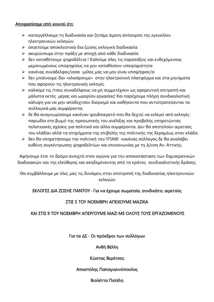 ΟΙ 4 ΣΥΛΛΟΓΟΙ Π.Ε. ΣΤΗΝ ΑΝΑΤΟΛΙΚΗ ΑΤΤΙΚΗ ΛΕΜΕ ΟΧΙ ΣΤΙΣ ΗΛΕΚΤΡΟΝΙΚΕΣ ΕΚΛΟΓΕΣ ΑΙΡΕΤΩΝ / ΚΑΤΑΓΓΕΛΛΟΥΜΕ & ΑΠΕΧΟΥΜΕ ΑΠΟ ΚΑΘΕ ΔΙΑΔΙΚΑΣΙΑ