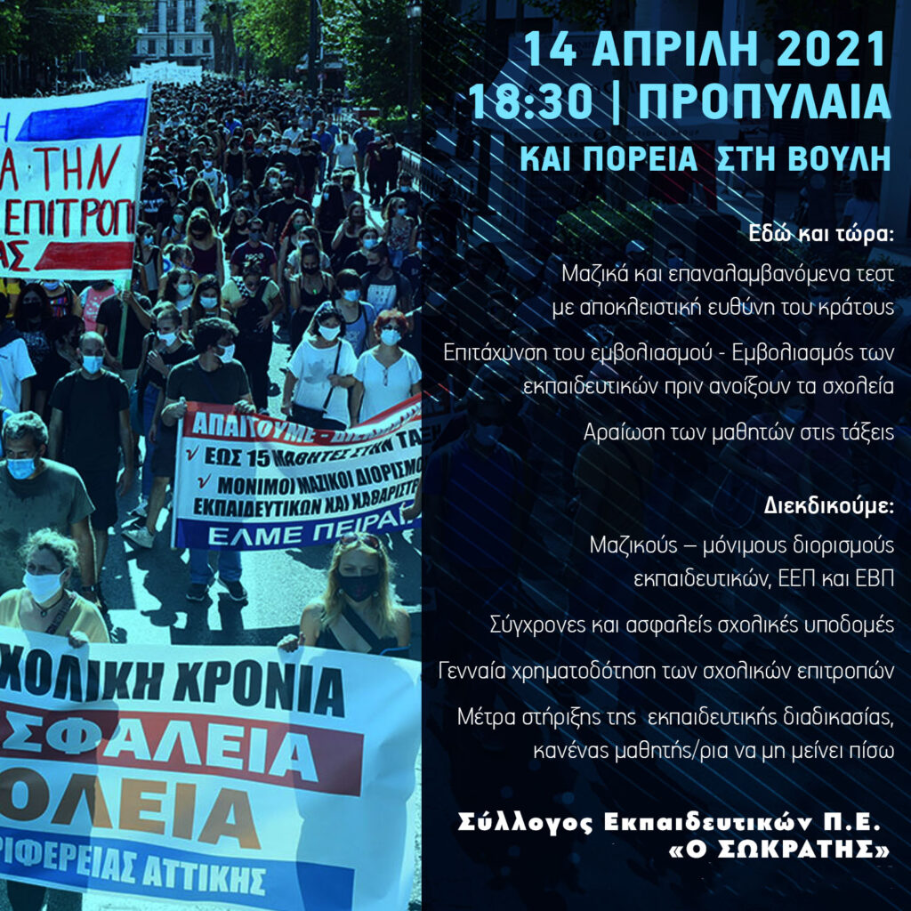 - Συμμετέχουμε την Τετάρτη 14/4 στις 18.30 στη συγκέντρωση στα Προπύλαια και πορεία στη Βουλή μαζί γονείς και μαθητές!