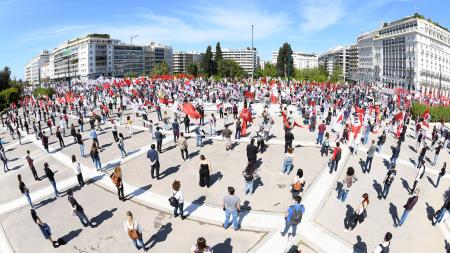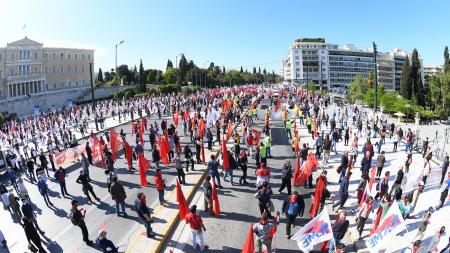 Ξεκάθαρο μήνυμα ότι δεν θα πληρώσουν ξανά τα σπασμένα της κρίσης έστειλαν Εργαζόμενοι και Σωματεία από όλους τους κλάδους με τη συμμετοχή τους στη συμβολική εκδήλωση του ΠΑΜΕ στο Σύνταγμα, τιμώντας αγωνιστικά την Εργατική Πρωτομαγιά.