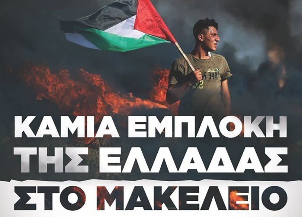 Έξω η Ελλάδα από τις πολεμικές επιχειρήσεις και τον ιμπεριαλιστικό πόλεμο! Καμιά συνεργασία με το κράτος δολοφόνο του Ισραήλ! Να κλείσουν οι βάσεις του θανάτου – Να γυρίσουν πίσω τα πλοία και το προσωπικό των ενόπλων δυνάμεων που βρίσκονται σε αποστολές στο εξωτερικό.