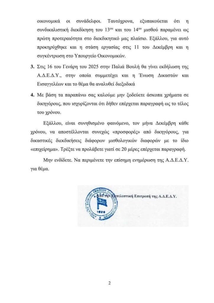 Καλούμε τον Ιανουάριο, τις Ομοσπονδίες να οργανώσουν νέο γύρο Γενικών Συνελεύσεων και ολομέλεια/γενική συνέλευση προέδρων για την απεργιακή/αγωνιστική κλιμάκωση του αγώνα.