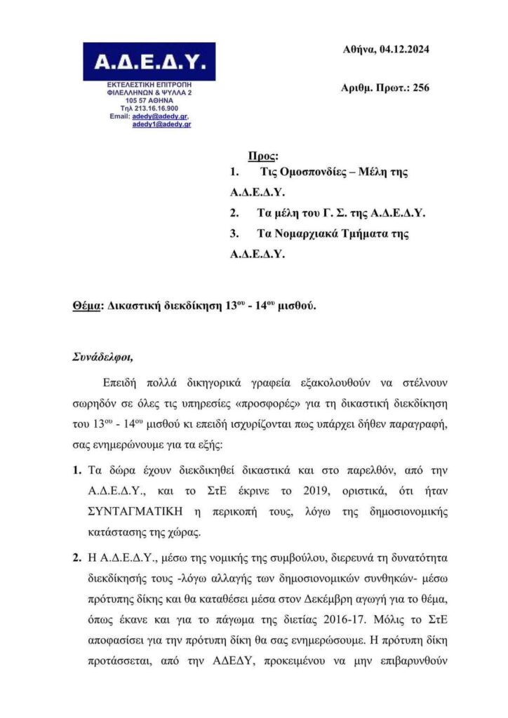 Το λέμε καθαρά! Το δικαίωμα στην απεργία το έχουμε κατοχυρώσει οι εργαζόμενοι με τους αγώνες μας. Δεν το παζαρεύουμε και δεν το παραδίδουμε! Καμία ποινή, καμιά καθαίρεση δε μπορεί να προκύψει για κάποιον δημόσιο υπάλληλο που συμμετέχει σε οποιαδήποτε μορφή κινητοποίησης του κλάδου. Ο χαρακτηρισμός της συμμετοχής σε απεργία των δημοσίων υπαλλήλων ως «παράλειψη καθήκοντος» αποτελεί ευθεία καταπάτηση του απεργιακού δικαιώματος που οι αγώνες μας κατοχύρωσαν στην εργατική νομοθεσία και στο Σύνταγμα. Δεν το παραδίνουμε! Υπερασπίζουμε τις/τους απεργούς με κάθε τρόπο πολιτικό, συνδικαλιστικό, νομικό. Δε θα επιτρέψουμε να κατισχύσει η τρομοκρατία των απαγορεύσεων άλλων εποχών. Δεν θα τους περάσει!