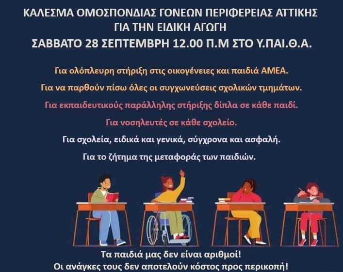 Πανελλαδική κινητοποίηση για την Ειδική Αγωγή – Σάββατο 28/9 στις 12:00 Υπ. Παιδείας