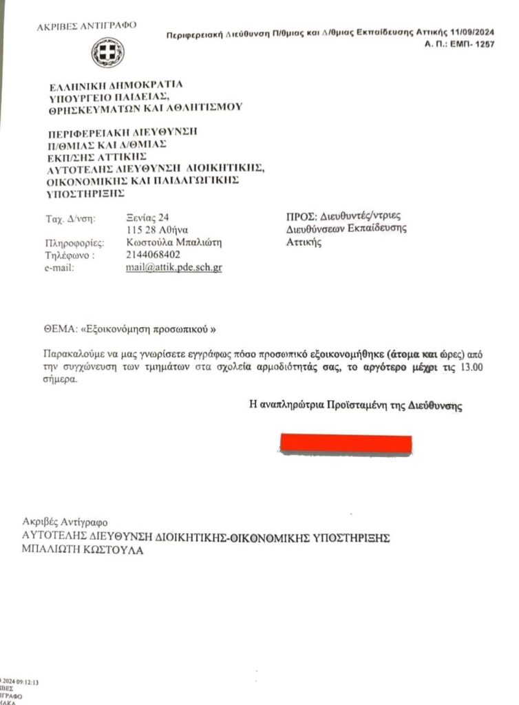 ΟΛΕΣ ΚΑΙ ΟΛΟΙ ΣΤΗΝ ΚΙΝΗΤΟΠΟΙΗΣΗ ΣΤΗΝ ΠΕΡΙΦΕΡΕΙΑΚΗ ΔΙΕΥΘΥΝΣΗ ΕΚΠΑΙΔΕΥΣΗΣ ΑΤΤΙΚΗΣ (ΞΕΝΙΑΣ 24 ΑΘΗΝΑ) ΤΗΝ ΠΑΡΑΣΚΕΥΗ 13/9 ΣΤΙΣ 14:00