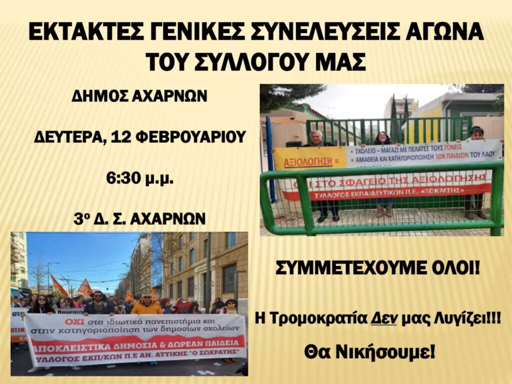 Όλοι/ες στην απεργία – αποχή από την ατομική αξιολόγηση.