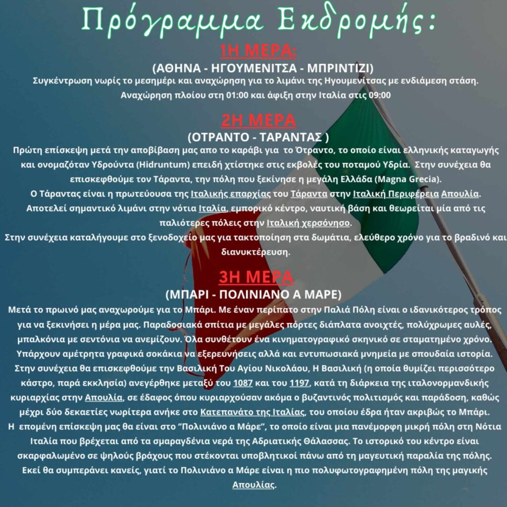 5. Εκδρομή συλλόγου στο τέλος της σχολικής χρονιάς στο εξωτερικό.