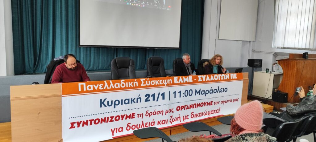 Την Κυριακή 21/1/2024, μετά από κάλεσμα των ΣΕΠΕ, «Ο Σωκράτης», «Ρ.Ιμβριώτη», «Πλουμπίδης», «Σεφέρης», Χίου, Φωκίδας, Γρεβενών και των ΕΛΜΕ, Πειραιά, Κεφαλλονιάς, Ζακύνθου και Λήμνου, πραγματοποιήθηκε στην Αθήνα, στο Μαράσλειο Διδασκαλείο, μαζικότατη πανελλαδική σύσκεψη συντονισμού Συλλόγων Π.Ε. και ΕΛΜΕ, για την οργάνωση και κλιμάκωση της πάλης.