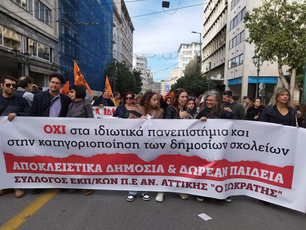 Ως εκπαιδευτικοί με τη μαζική μας συμμετοχή στον αγώνα, μαζί με τους φοιτητές, μαθητές, γονείς και εργαζόμενους εκπληρώνουμε το χρέος που έχουμε απέναντι στη νέα γενιά να αντιπαλέψουμε τόσο τη δημιουργία ιδιωτικών πανεπιστημίων όσο και την επιχειρηματική λειτουργία του Δημόσιου Πανεπιστημίου και να αγωνιστούμε για ένα Δημόσιο Πανεπιστήμιο αντάξιο των σύγχρονων μορφωτικών αναγκών και δυνατοτήτων!