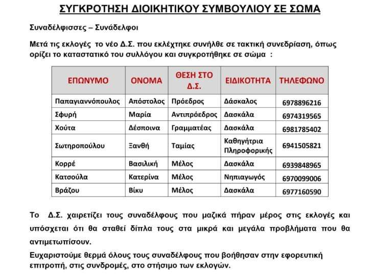 Ο αγώνας μας για Δημόσιο Σχολείο, που θα ικανοποιεί τα μορφωτικά δικαιώματα και τις μαθησιακές ανάγκες των μαθητών και των μαθητριών μας, με σεβασμό στην εργασία μας και τις αρχές της παιδαγωγικής επιστήμης, συνεχίζεται με μεγαλύτερο πάθος, συλλογικότητα και ορμή.