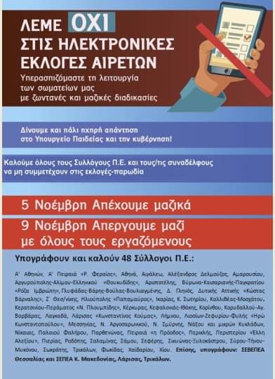 48 Σύλλογοι Π.Ε. καλούν σε αποχή από τις ηλεκτρονικές «εκλογές»